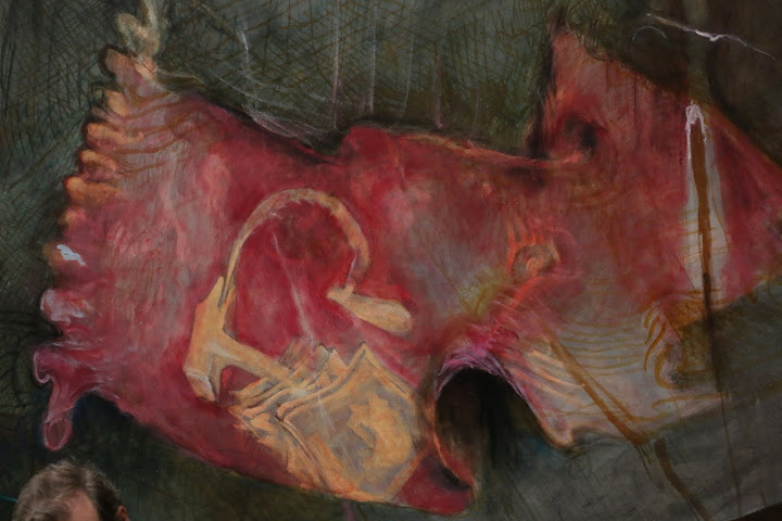 Right side panel: Reminds one of all the murals in Baroque Catholic Church domes where souls rise toward the heavens. Here, they are falling. |